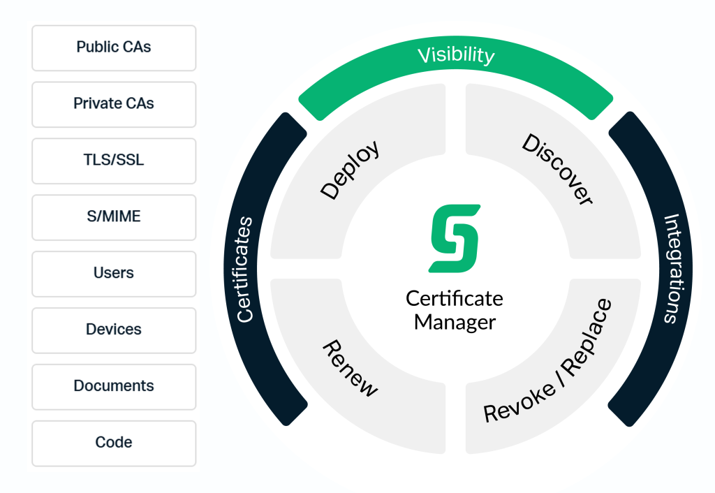 SCM allows you to manage the lifecycle of all types of certificates