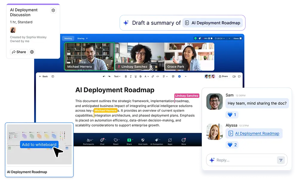 The platform brings together meetings, team chat, phone, whiteboard, and AI-powered capabilities to support everyday business communication across industries.